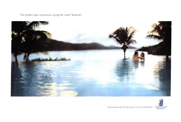 Agency: Brunner Honeymoon ad that ran in various pubs, including Martha Stewart Weddings. Headline: The perfect spot to practice saying the word “husband.”